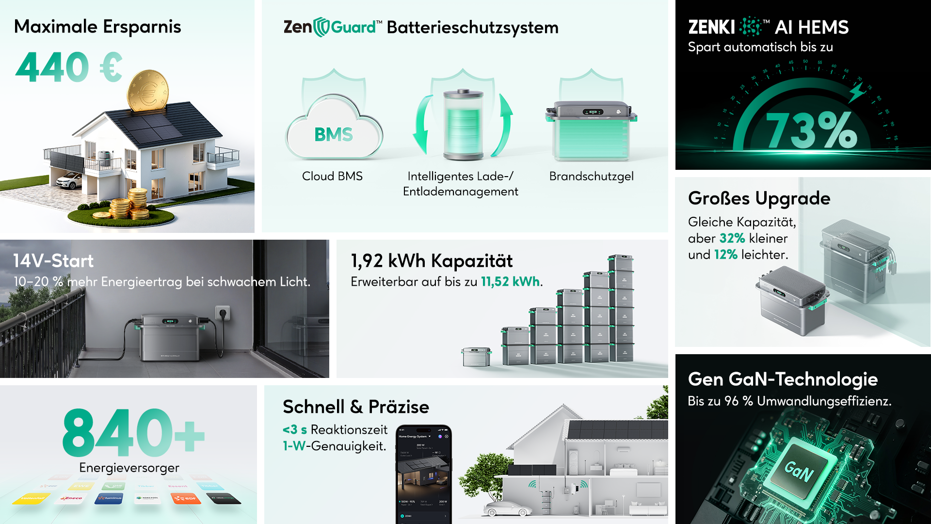 • 1,92 kWh Kapazität, erweiterbar auf 11,52 kWh
